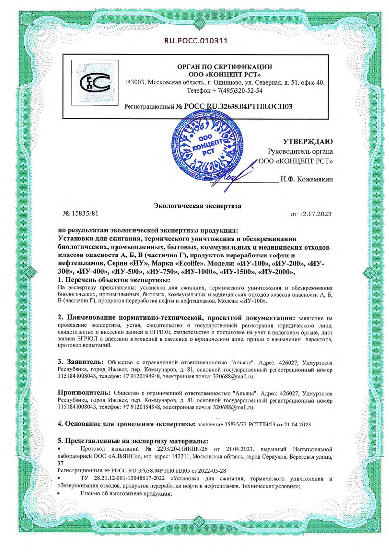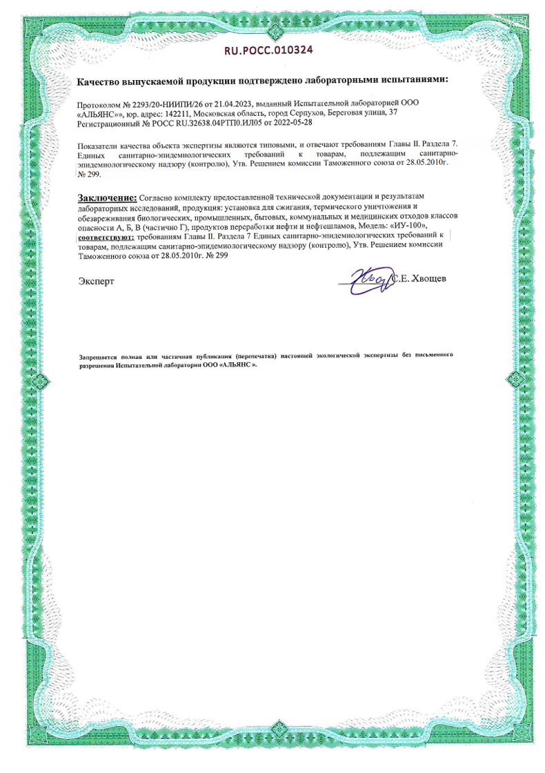 для сжигания, термического уничтожения и обезвреживания биологических, промышленных, бытовых, коммунальных и медицинских отходов