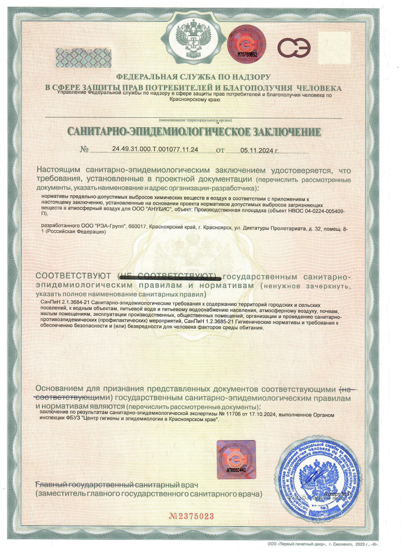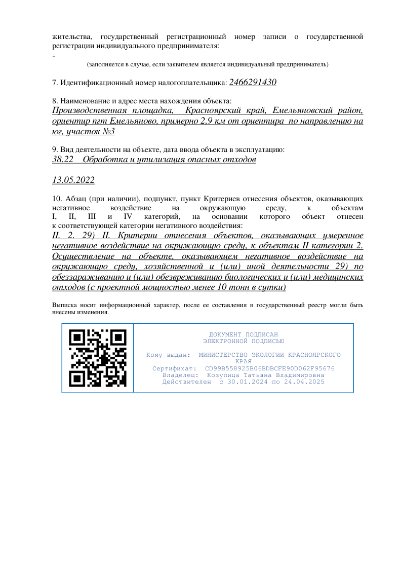 Выписка из реестра объектов, оказывающих негативное воздействие на окружающую среду